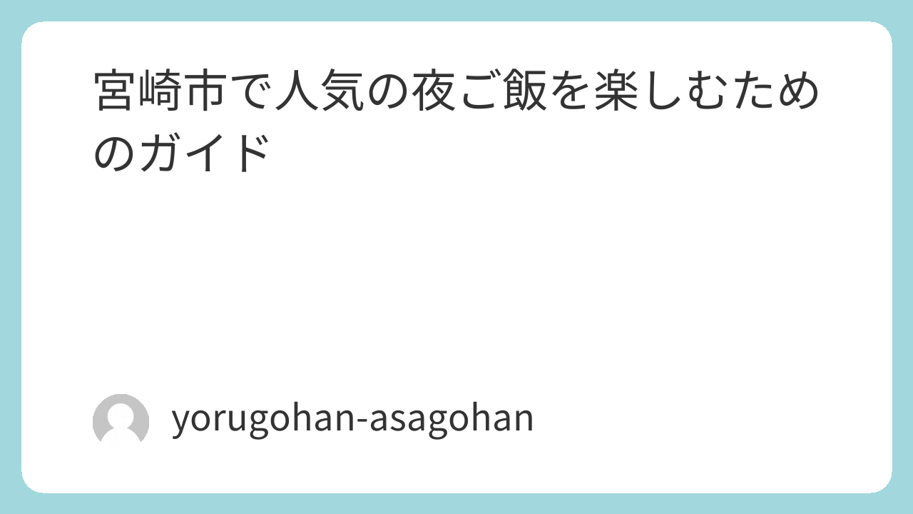 宮崎市で人気の夜ご飯を楽しむ方法をいろいろお伝えしてきました。高評価のお店からおしゃれな雰囲気、安い予算、家族向けまで、選択肢が豊富です。あなたの目的に合わせて選べば、きっと素敵な時間が過ごせますよ。